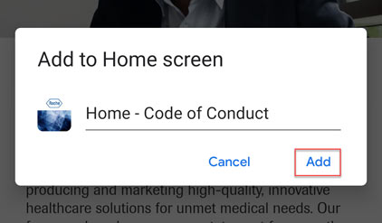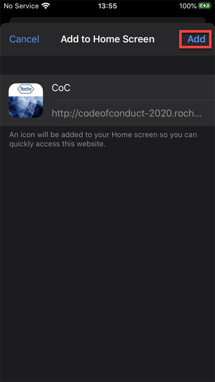 Click "Add to Home Screen" to create a Icon on the Home Screen.
