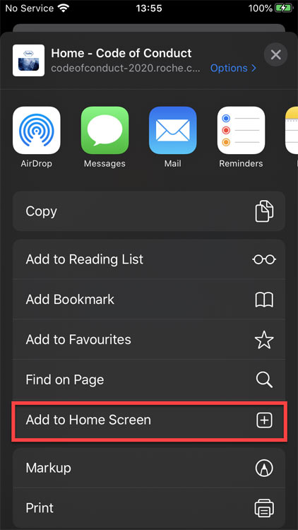 Select "Add to Home screen" to create a Icon on the Home Screen.